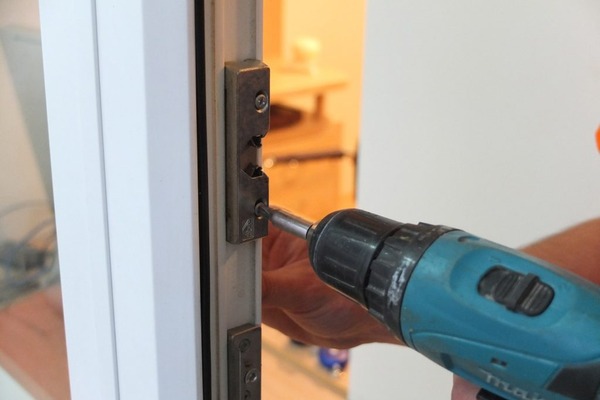 Теперь пришло время установить защёлку. Приложите её к дверной поверхности и выровняйте с ранее просверленными отверстиями. Заверните винты, но не переусердствуйте – защёлка должна крепко стоять, но не деформироваться.